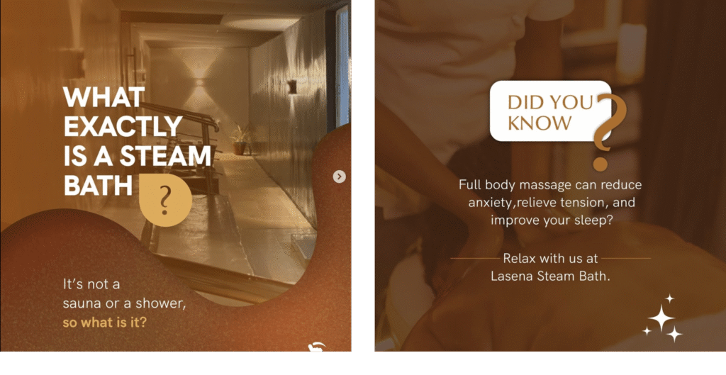 Yes, it is. The steam bath offers numerous health benefits, including improved blood circulation, revitalized skin and muscle health, temporarily reduced blood pressure, increased heart rate, and relief for stiff joints and muscles. However, individuals with very low blood pressure, low blood sugar, or those above 80 years only are not recommended to experience the Steam Bath for their own safety. This is why at Lasena, we conduct a vitals check before every steam session to ensure you’re fit and safe to proceed.